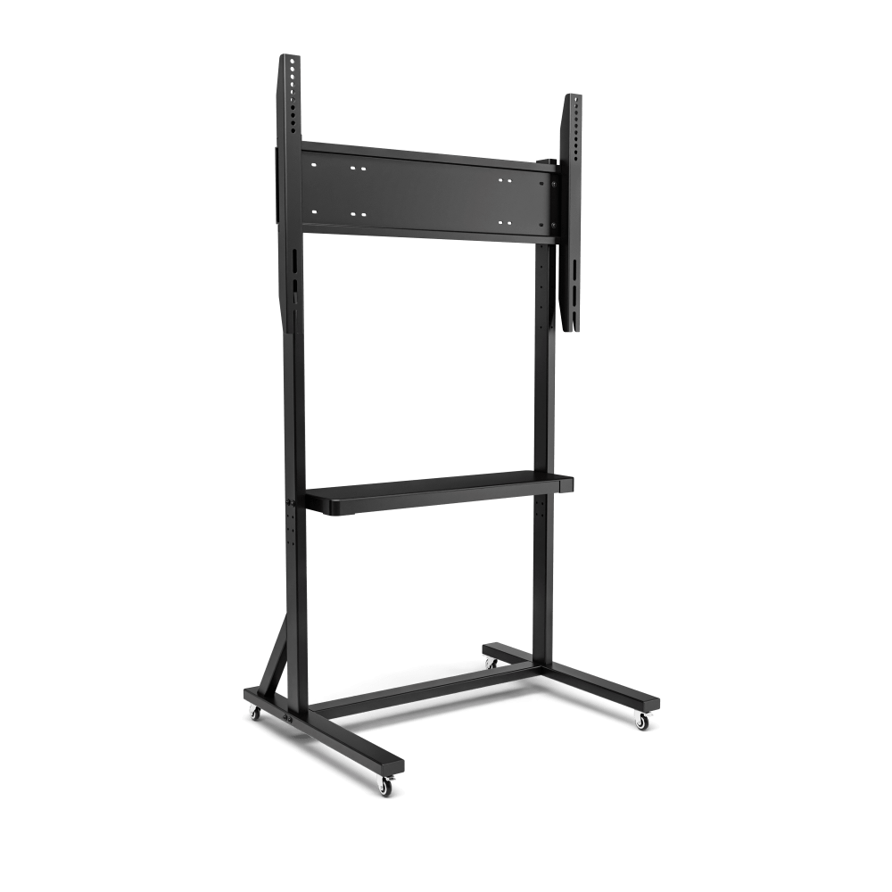 Мобильная стойка для интерактивных панелей SD-1 полностью произведена на территории Российской Федерации. Для удобного перемещения по аудитории стойка оснащена колесиками с фиксаторами, а так же полкой для размещения дополнительного оборудования или учебных материалов. Мобильная стойка способна выдержать интерактивную панель весом до 110 кг. диагоналями от 55" до 86"