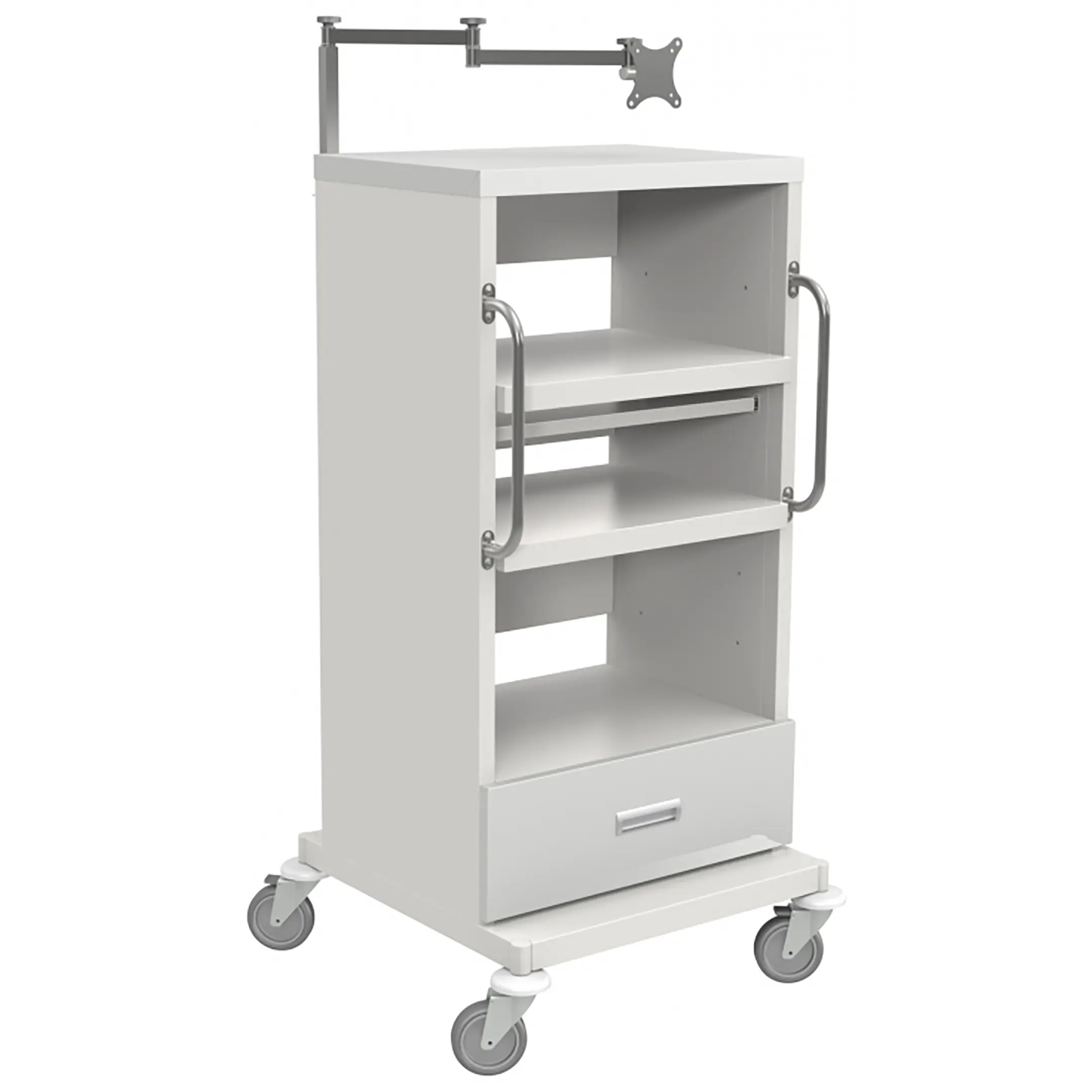 • верхняя часть оснащена креплением для монитора, телескопическое устройство которого позволяет регулировать высоту крепления и положение монитора в пространстве;