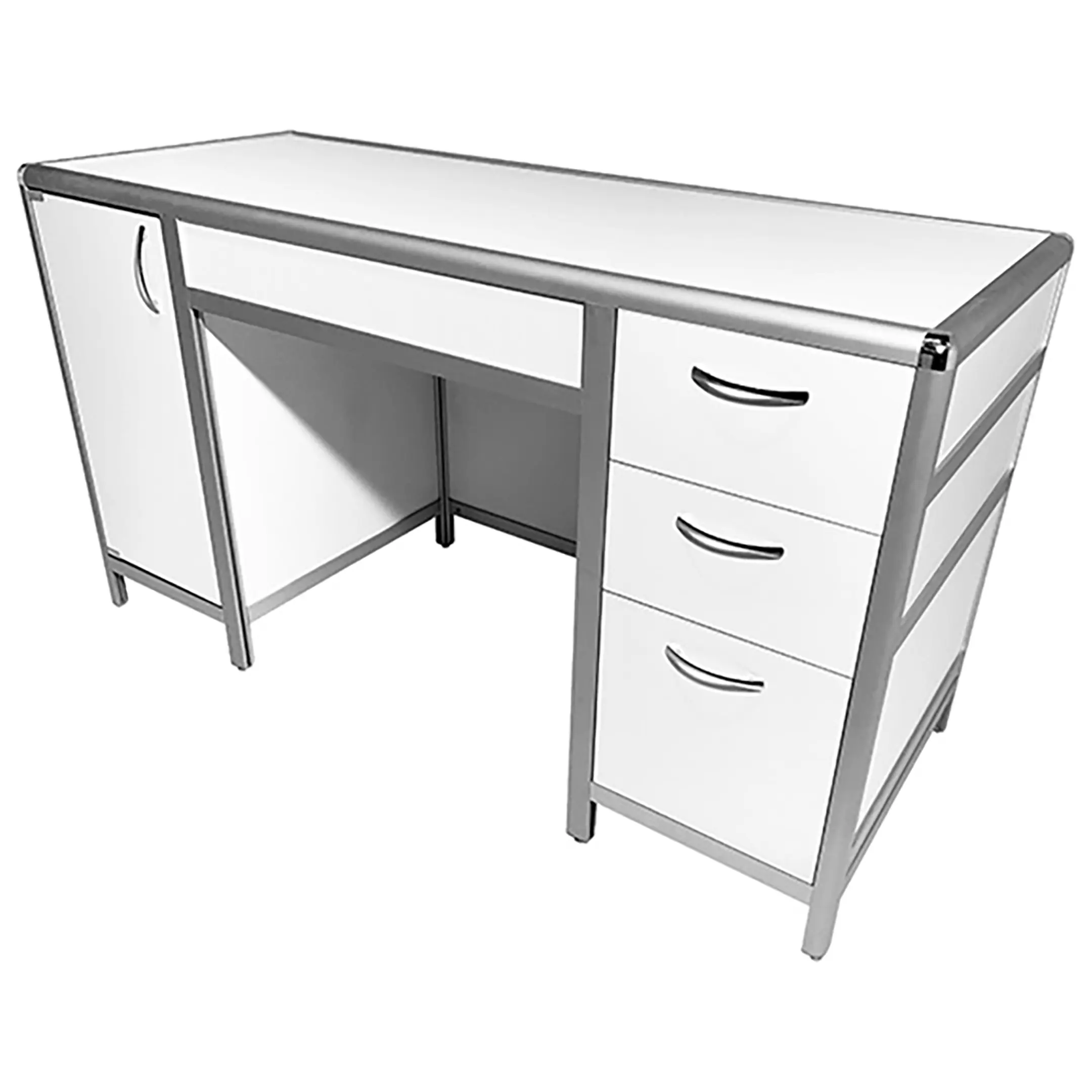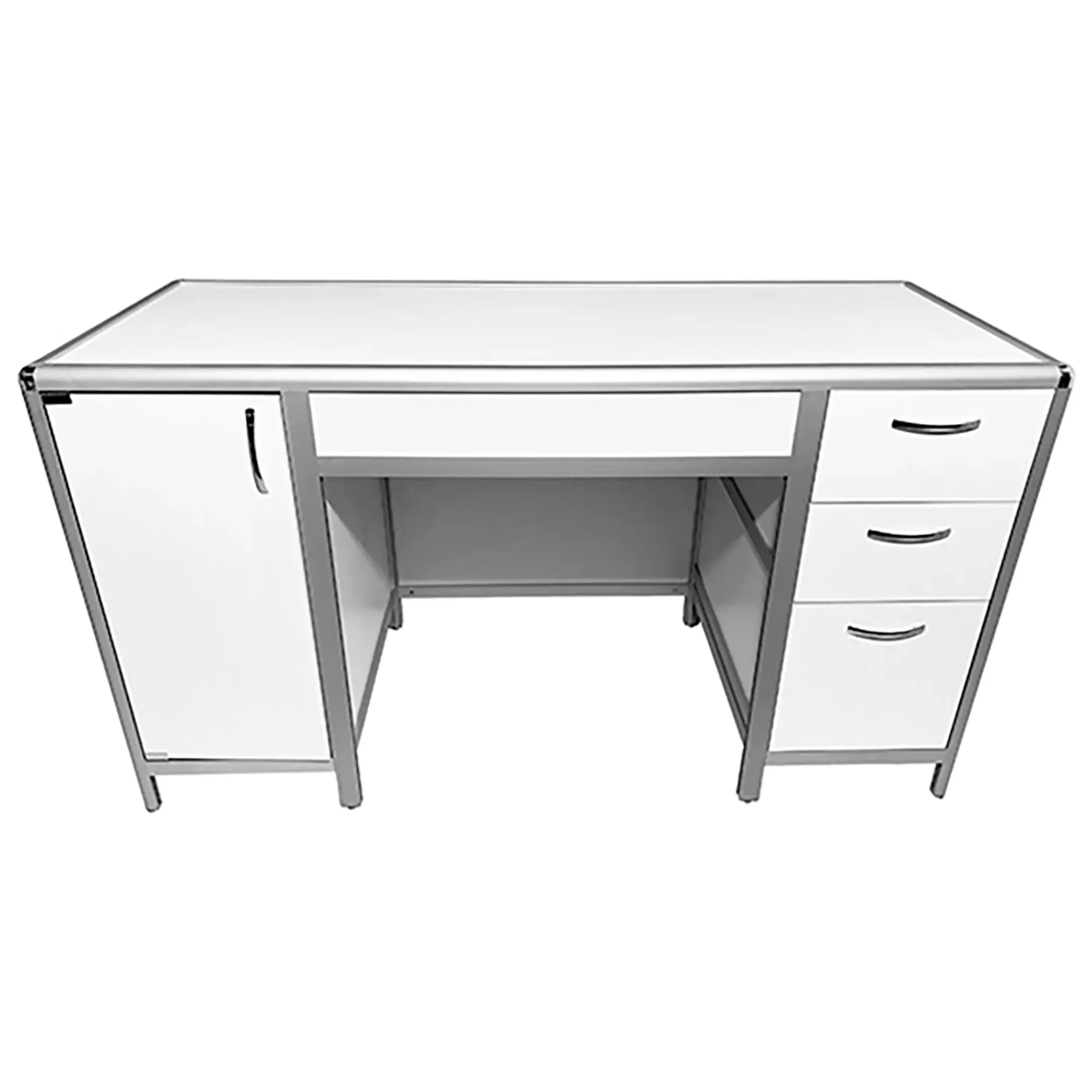 Стол лабораторный MED 10.008al (белый) — это идеальное решение для создания эффективного и организованного рабочего места сотрудников в лабораториях и медицинских учреждениях. Модель оснащена двумя боковыми тумбами: справа с тремя выдвижными ящиками, слева с распашной дверкой и полкой. Каркас выполнен из алюминиевого профиля, столешница из ЛДСП толщиной 16 мм.