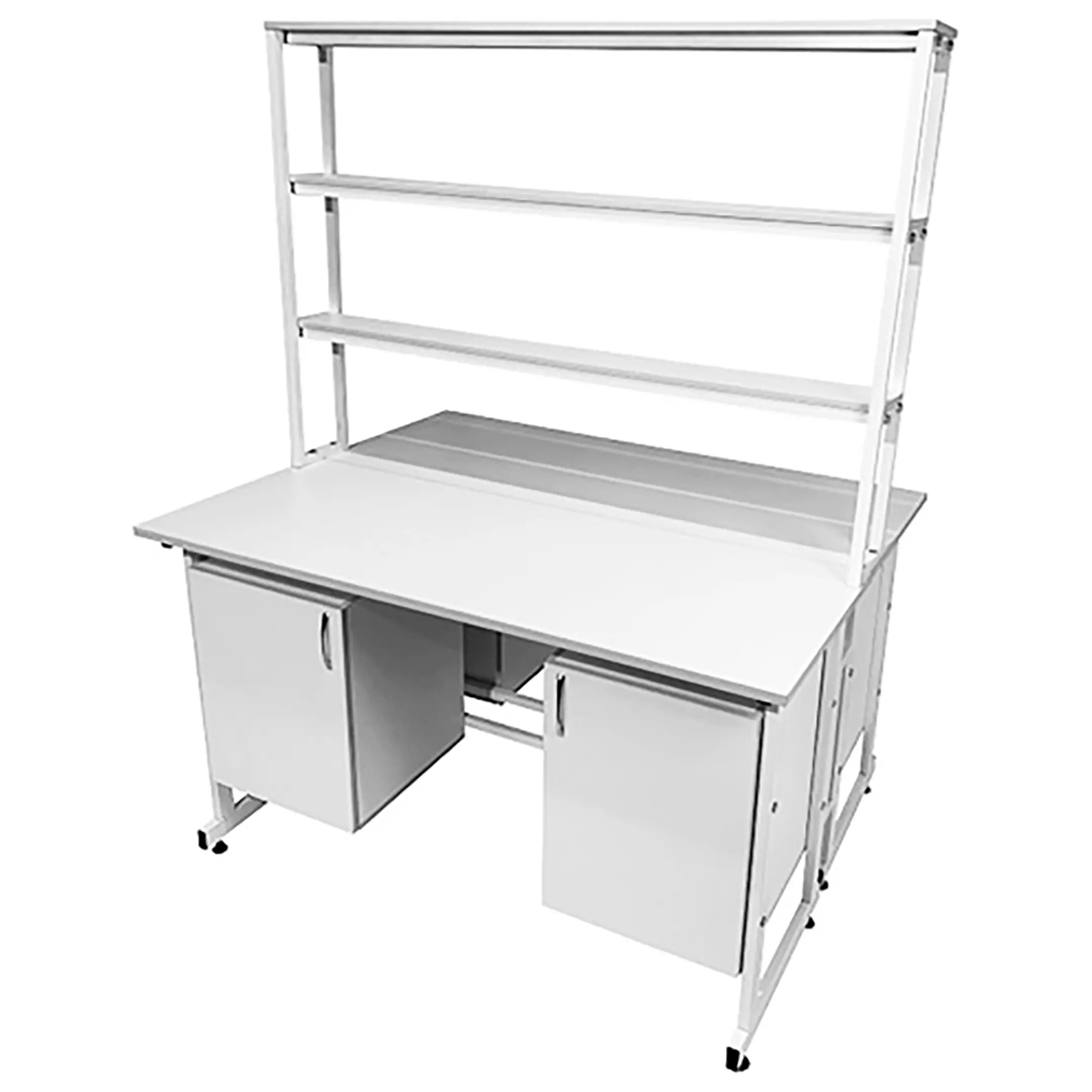 - Вместительная система хранения — четыре подвесные тумбы с распашными дверками и полками для хранения лабораторных принадлежностей.