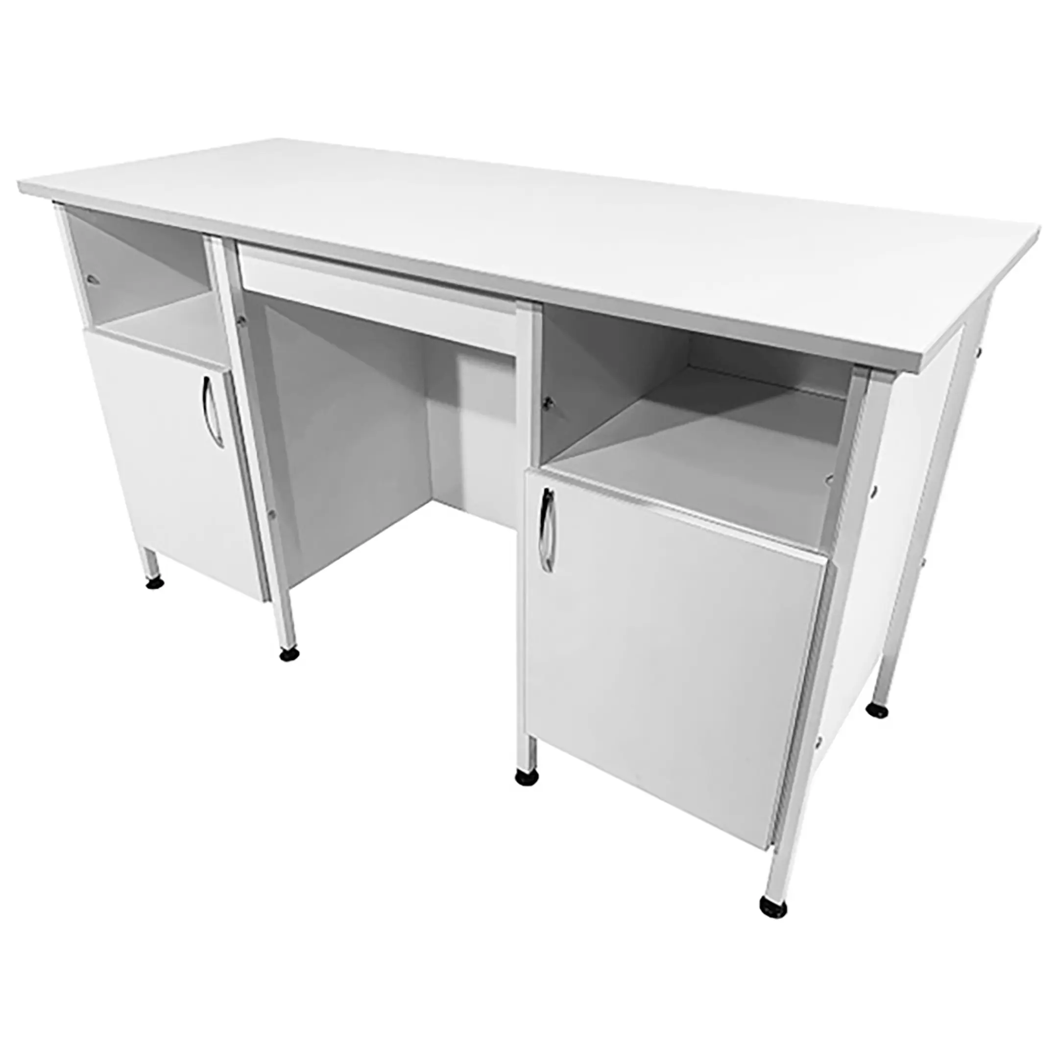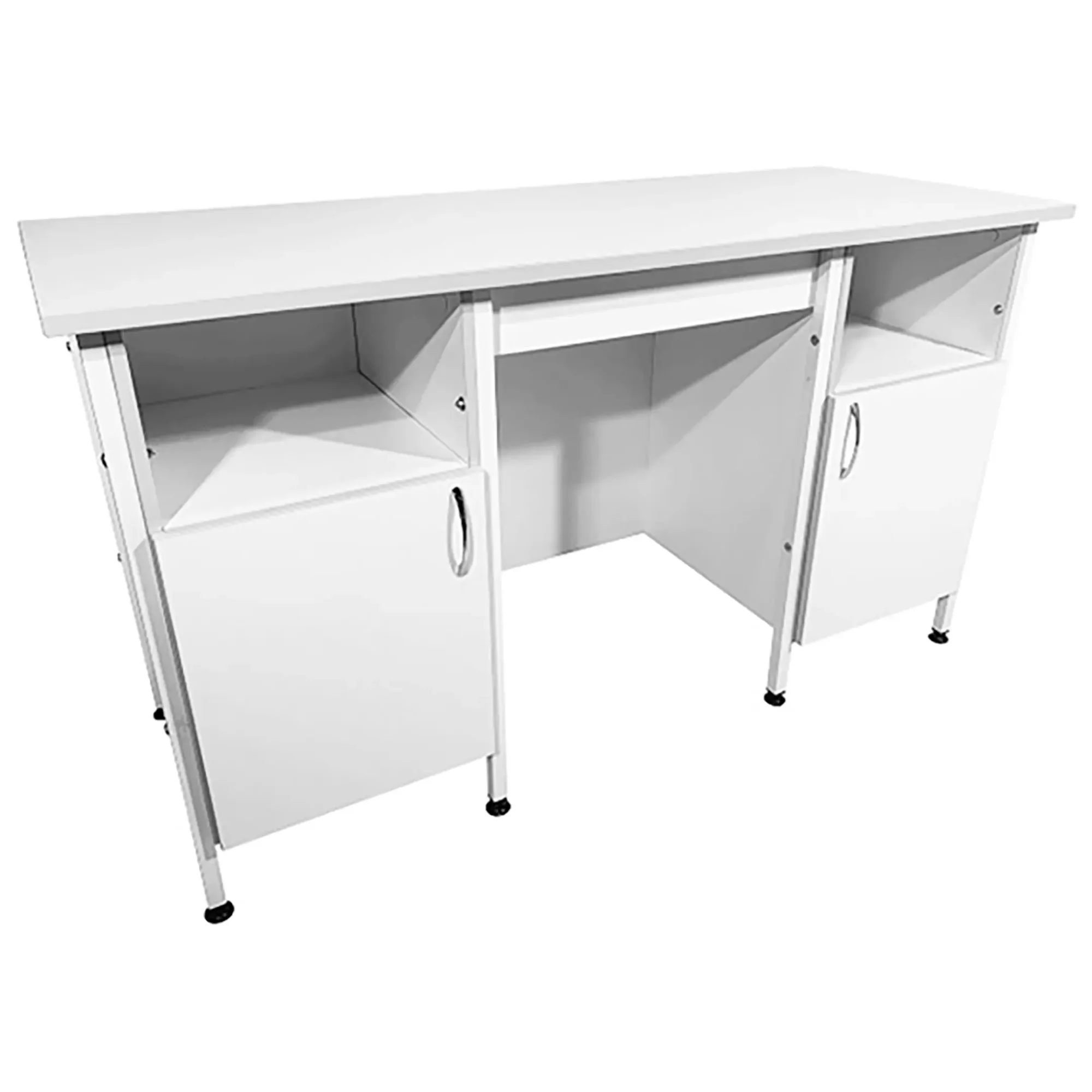 Стол лабораторный СЛ 12.019 (белый) — это идеальное решение для создания эффективного и удобного рабочего пространства сотрудников в лабораториях и медицинских учреждениях. Модель оснащена двумя тумбами с открытой верхней нишей и нижним отделом с дверцей. Каркас выполнен из стального профиля, столешница из ЛДСП толщиной 22 мм.