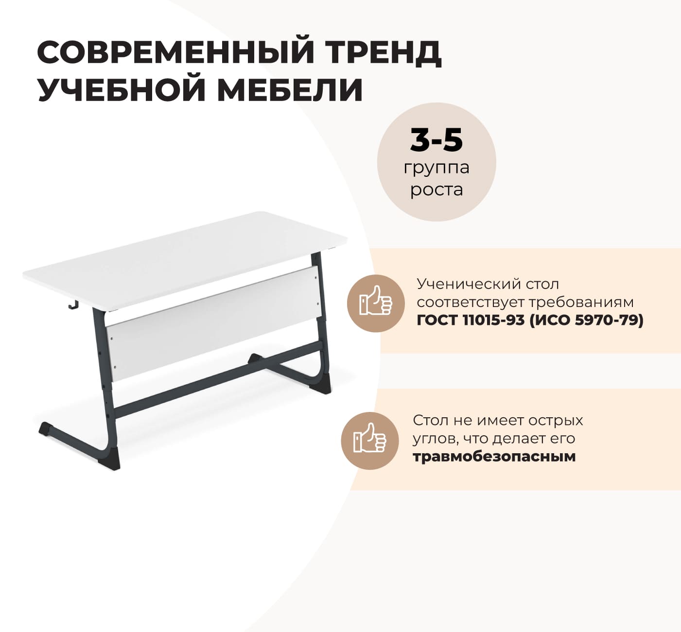 - Эргономичная конструкция — продуманная форма обеспечивает правильную посадку ученика.