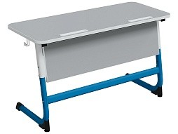 Стол 2-местный школьный 3-5 г/р "Логика" с наклоном столешницы 0-15° (серый, м/к белый/синий)