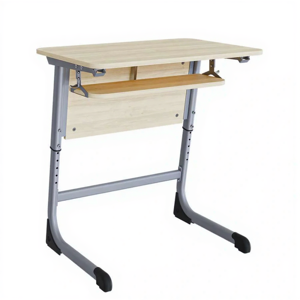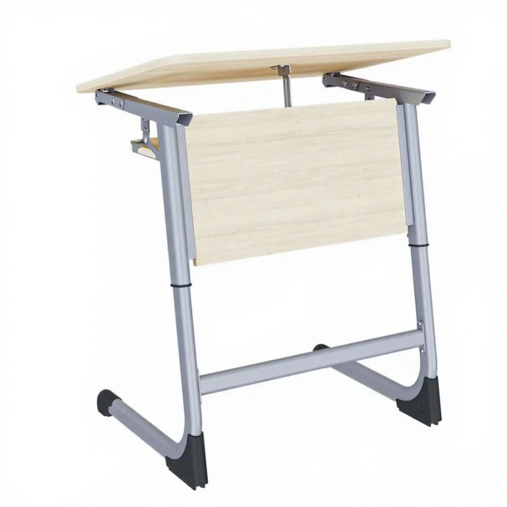 Парта "Smart" разработана специально для учебных заведений. Модификация с лдсп экраном, регулировкой угла наклона и полкой.Парта на плоскоовальной трубе.