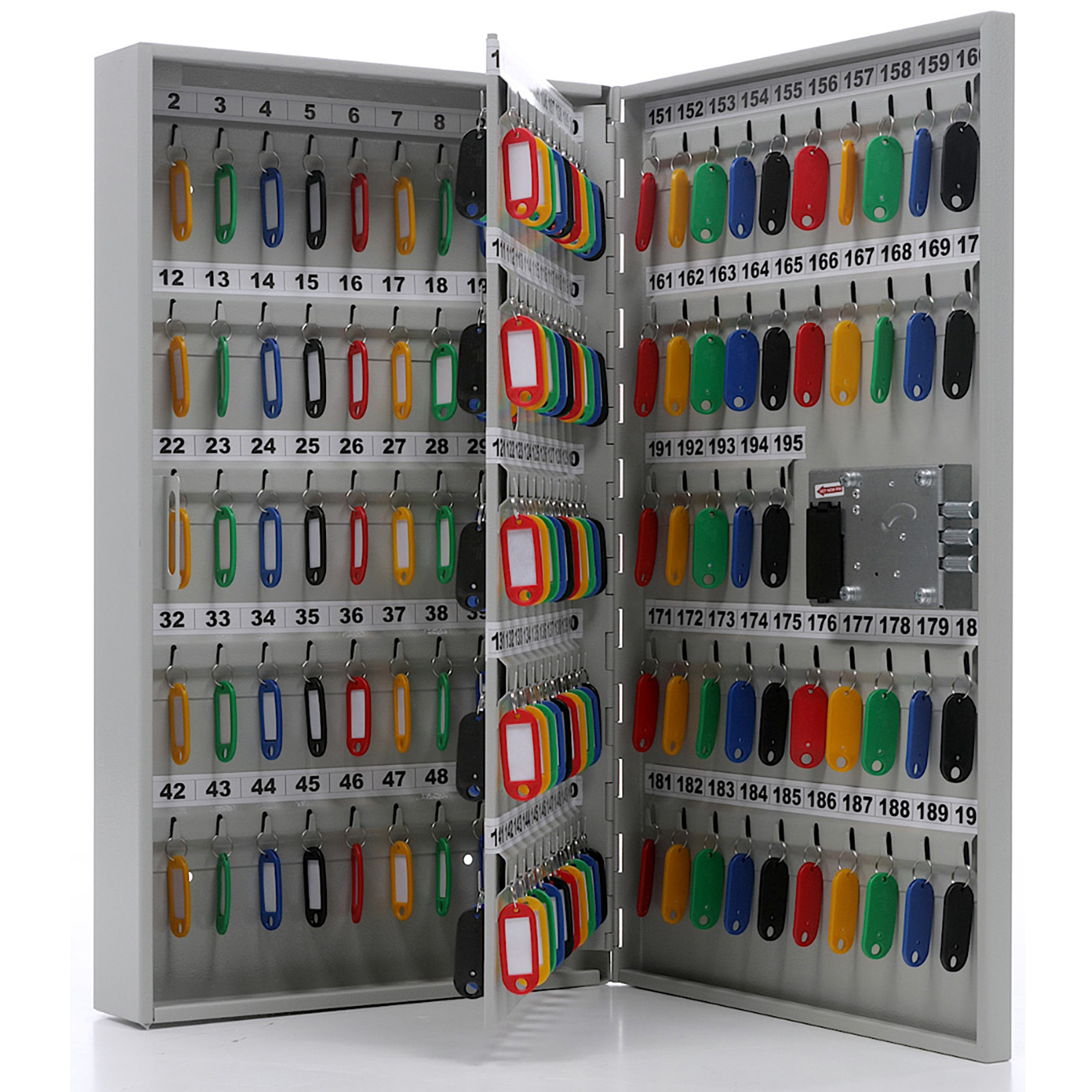 Ключница KEY-195EL (с брелками) — это современная и электронная система для высокоорганизованного и безопасного хранения ключей с функцией контроля доступа и учета. Модель KEY-195EL отличается наличием электронного замка, программируемым управлением и комплектацией брелками, что позволяет не только физически систематизировать ключи, но и вести электронный журнал их выдачи и возврата. Ключница предназначена для объектов с повышенными требованиями к безопасности и подотчетности, таких как банковские учреждения, серверные, лаборатории или зоны ограниченного доступа.