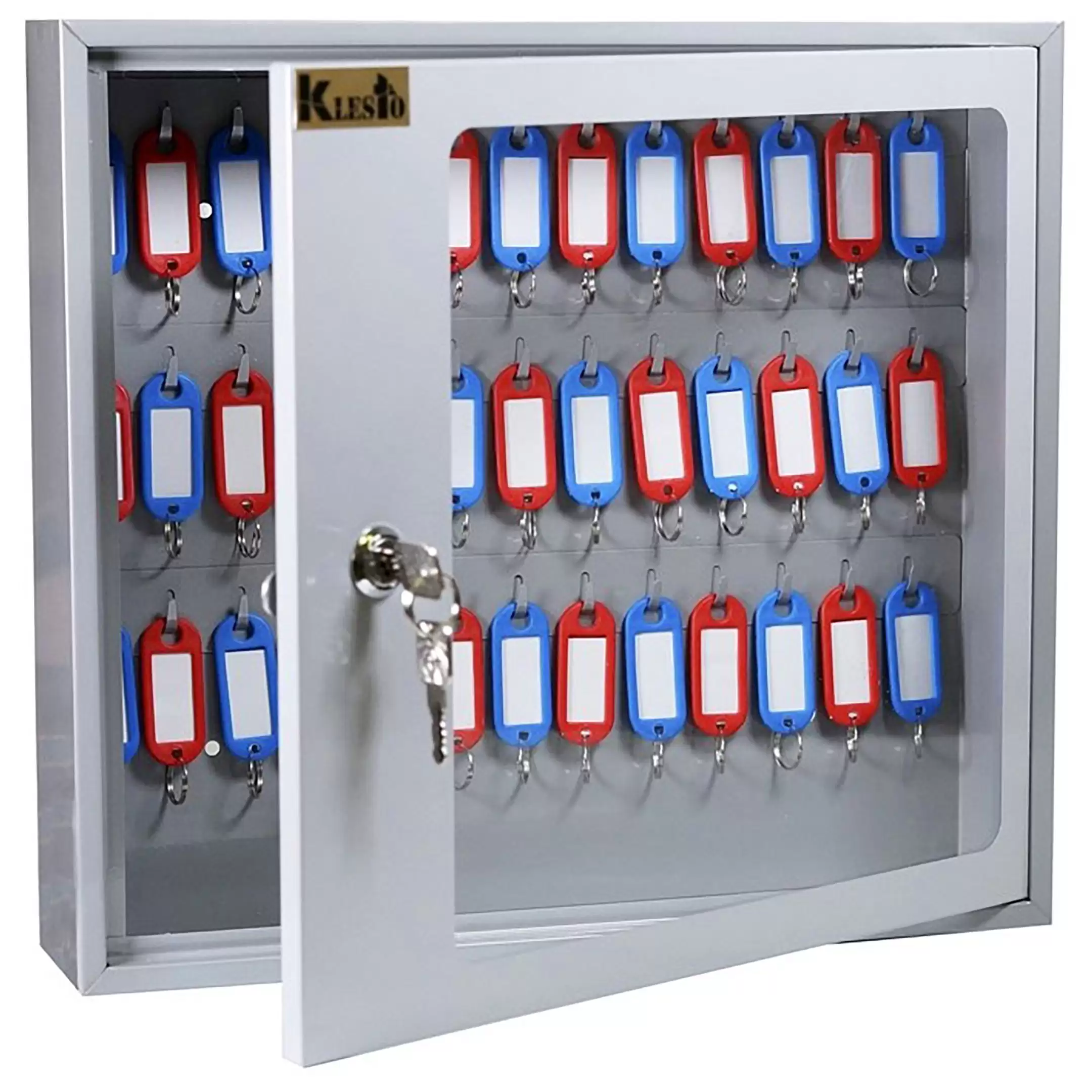 - Точная вместимость и оптимальные габариты — ключница рассчитана на хранение 39 ключей, что делает её идеальным выбором для мест, где требуется организовать строгий учет ограниченного, но значимого набора ключей: от служебных помещений и шкафов до оборудования. Ее компактные размеры позволяют удобно разместить шкаф на стене в кабинете, на посту вахтера или у администратора.