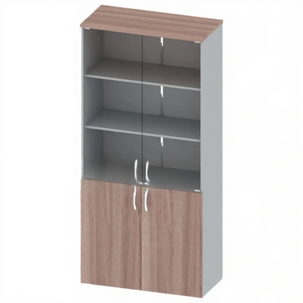 - Комбинированное остекление — две стеклянные двери для демонстрации содержимого и две глухие дверки с замком для хранения материалов, требующих защиты.