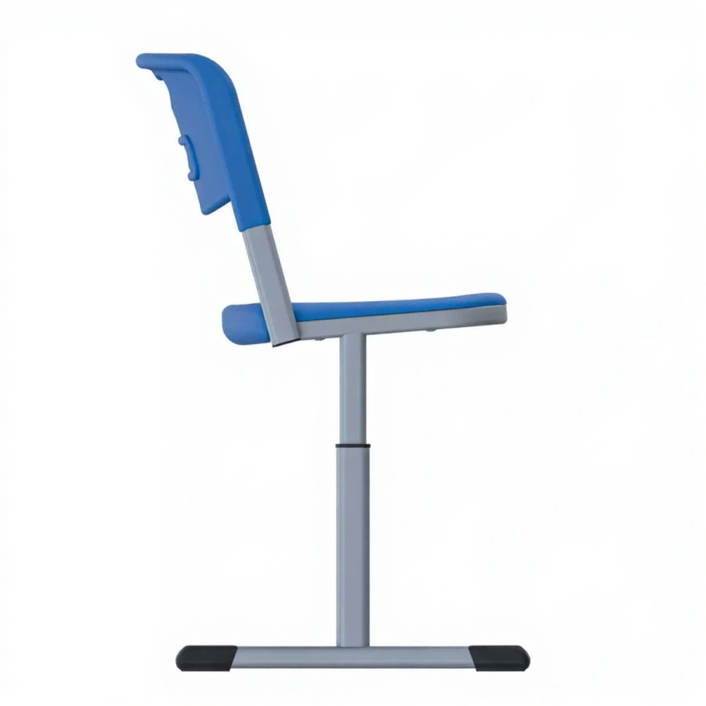• Регулируемая высота — позволяет адаптировать стул под рост ученика и высоту стола, обеспечивая правильную посадку.