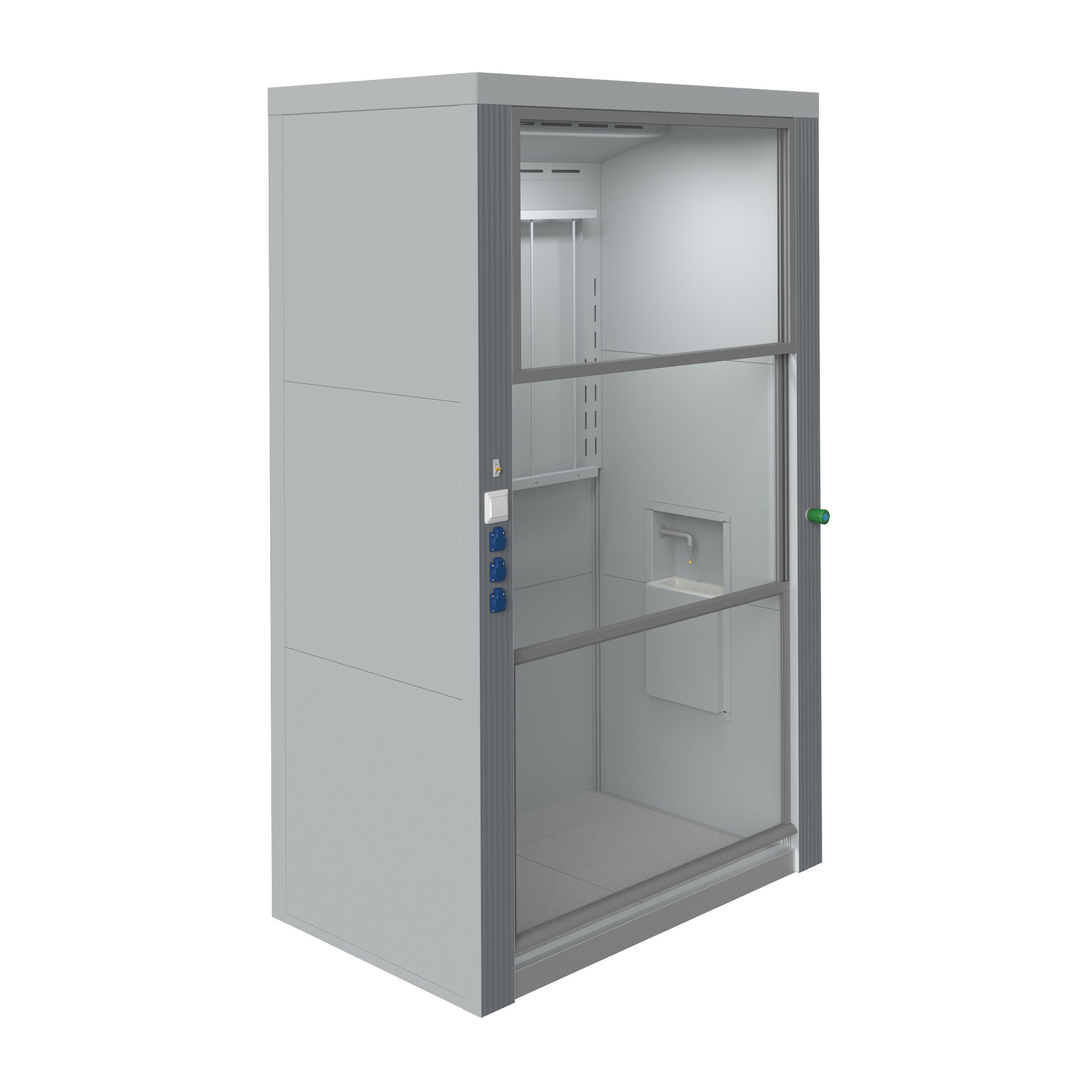 - Эргономичность и безопасность — подъемные или раздвижные створки с противоударным остеклением, удобный доступ к коммуникациям.