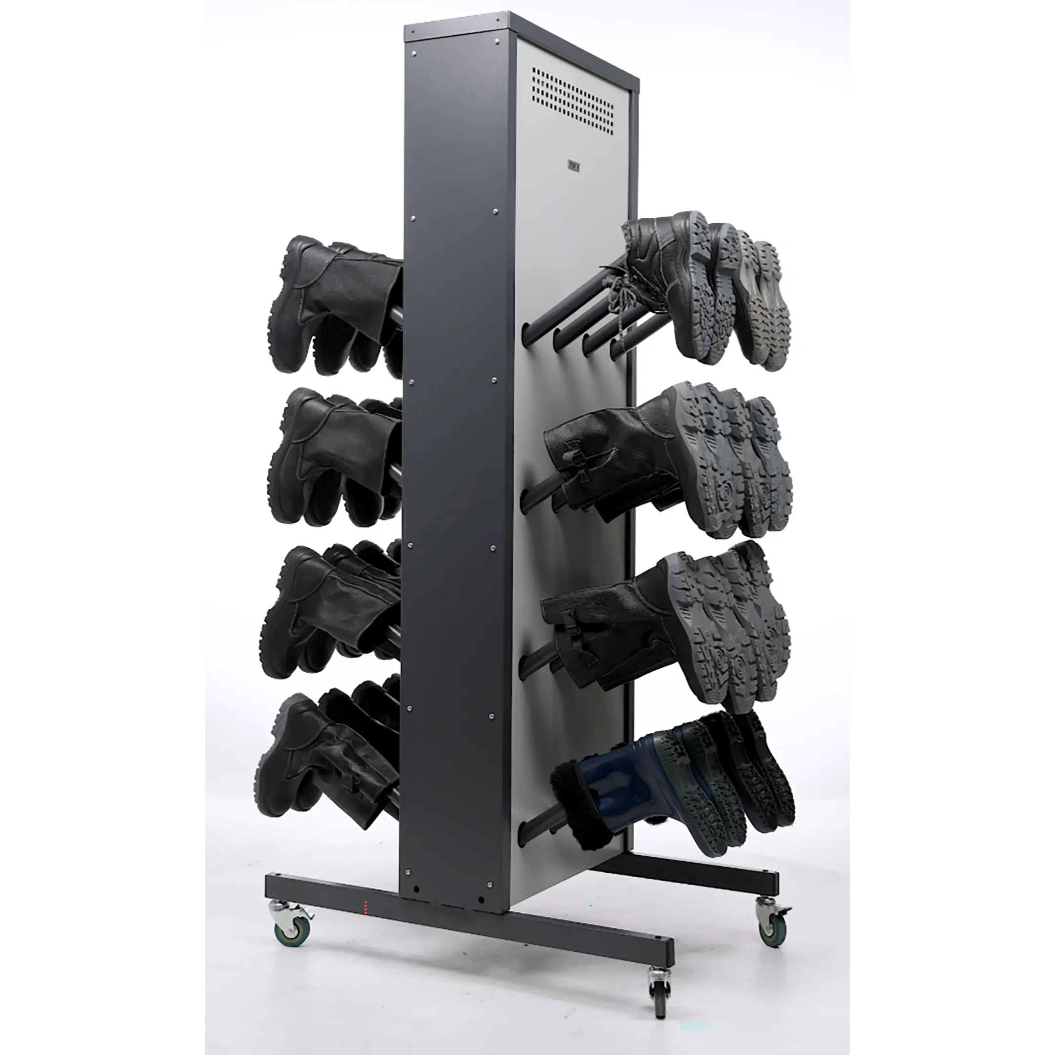 - Универсальность и удобство использования — модель подходит для различных типов помещений и может быть легко установлена в раздевалках, коридорах или специальных сушильных зонах. Удобная конструкция обеспечивает легкий доступ к обуви.