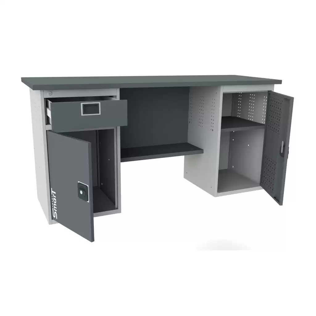 Верстак SMART 1760.1-1.S2.1 — это надежное и функциональное решение для организации рабочего места в легких производствах, мастерских и автосервисах. Элементы изготовлены из высококачественной листовой стали, а покрытие устойчиво к механическим воздействиям и агрессивным жидкостям.