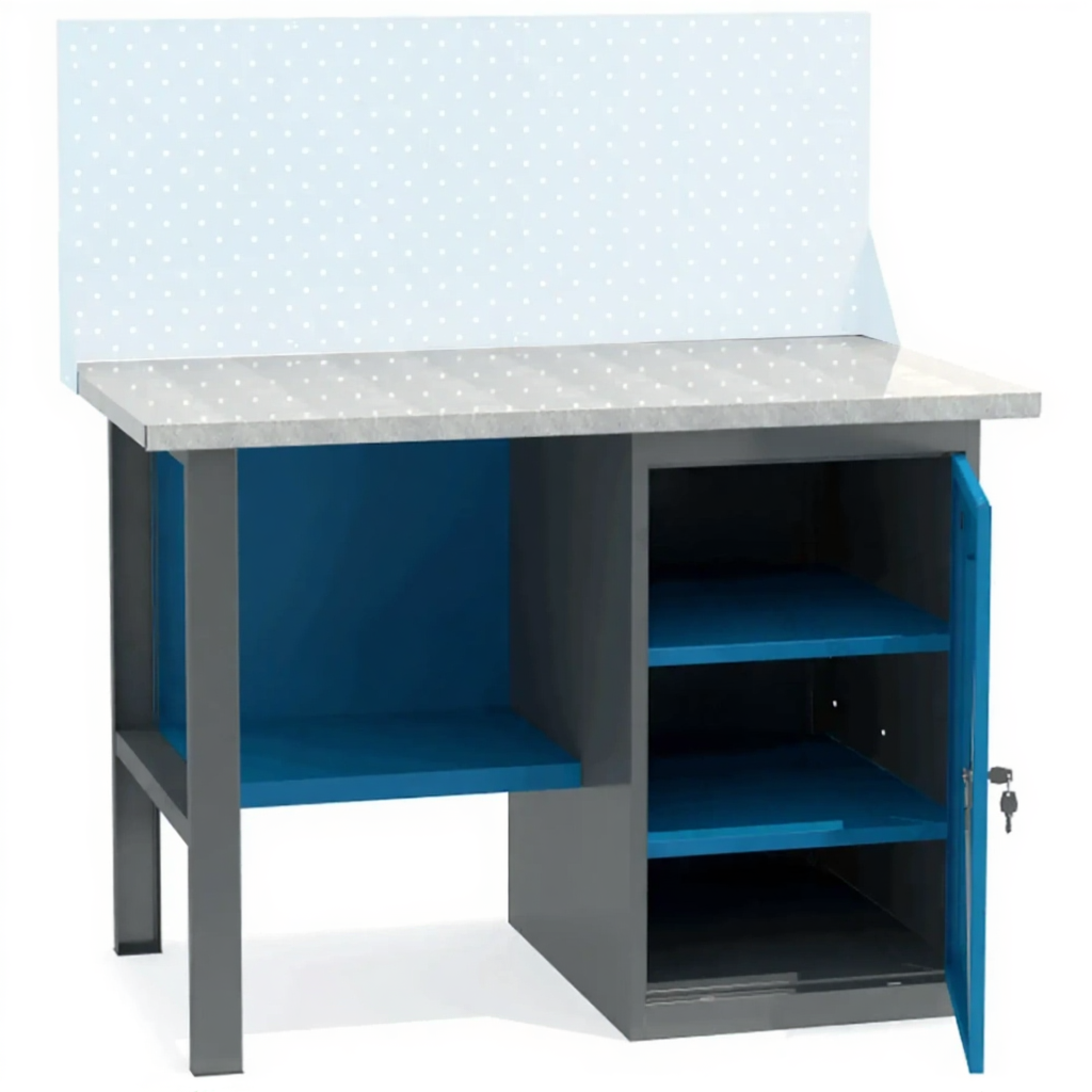 Верстак ВТ-1.2 с тумбой — это надежное и функциональное решение для оборудования рабочей зоны на предприятии, в гараже, мастерской, учебном классе. Прочная конструкция выдерживает значительную нагрузку, что позволяет выполнять даже силовые операции.