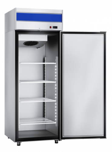 Особенности ШКАФА холодильного ШХ-0,7-01 нерж.: - Габаритные размеры: 740x850x2050 мм. - Герметичный цельнозаливной (пенополиуретаном) корпус из нержавеющей стали. - Толщина стенок камеры 57 мм. - Температура в камере от -5 до +5 С. - Эксплуатация допускается при температуре окружающего воздуха до +43 С, относительной влажности от 40 до 70%. - Хладагент фреон R404а. - Четыре полки-решетки размером 682 на 570 мм. Каждая выдерживает нагрузку в 40 кг. - ТЭН оттайки (автоматическая оттайка). - Герметичный компрессор Danfoss. - Динамическая система охлаждения обеспечивает равномерное охлаждение продуктов на всех полках. - Уплотнитель с магнитной вставкой (доводчик) на двери для обеспечения полной теплоизоляции. - Верхнее расположение агрегата улучшает теплообменные свойства и облегчает доступ для обслуживания. - Механический замок. - Светодиодное освещение внутреннего пространства. - Концевой микропереключатель, отключающий вентилятор воздухоохладителя при открывании двери. - Возможность установки двери как в положении "справа-налево", так и "слева-направо". - Ножки регулируются по высоте. - Ванна выпаривания конденсата. Описание ШКАФА холодильного ШХ-0,7-01 нерж.: Шкаф холодильный универсальный ШХ-0,7-01 нерж. с верхним расположением агрегата предназначен для кратковременного хранения, охлаждения и замораживания пищевых продуктов и напитков на предприятиях общественного питания и торговли.
