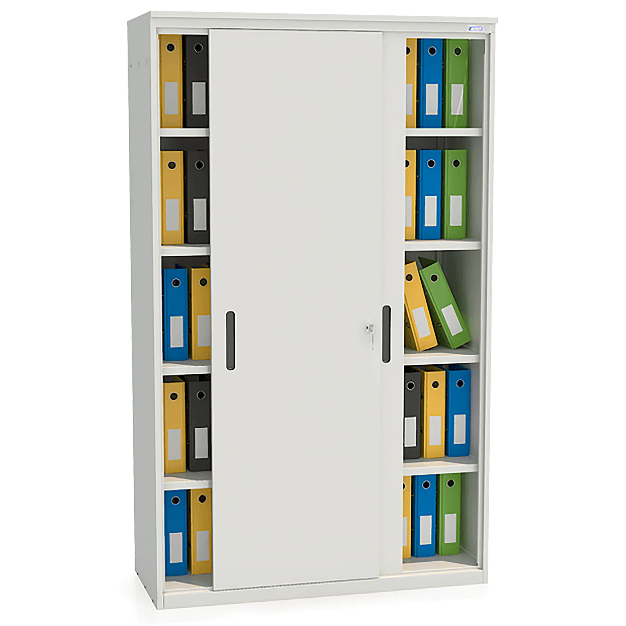 - Эргономичность и современный дизайн — система раздвижных дверей обеспечивает полный обзор и удобный доступ ко всем полкам. Лаконичный дизайн шкафа гармонично вписывается в обстановку современного офиса, кабинета или учебного помещения.