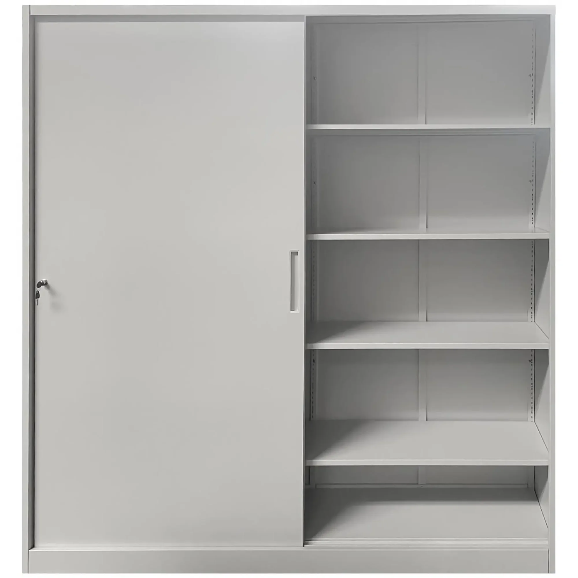 - Оптимальное использование площади — компактные габариты и раздвижные двери позволяют установить шкаф даже в узких помещениях, коридорах или небольших архивах, где использование шкафов с распашными дверями было бы затруднительно. Это идеальное решение для экономии пространства.