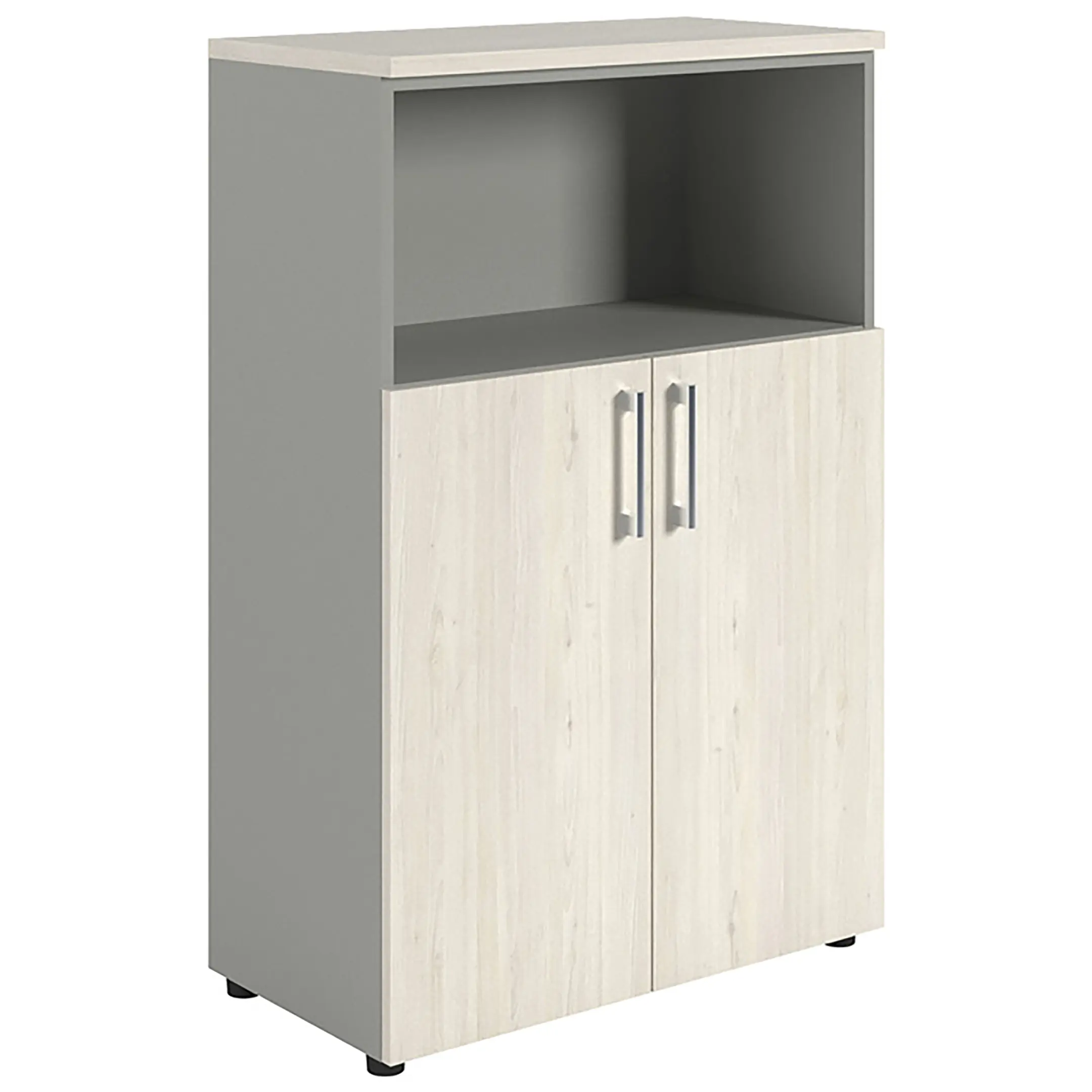 Шкаф NW 1280/2 полузакрытый белое дерево/серый предназначен для хранения.