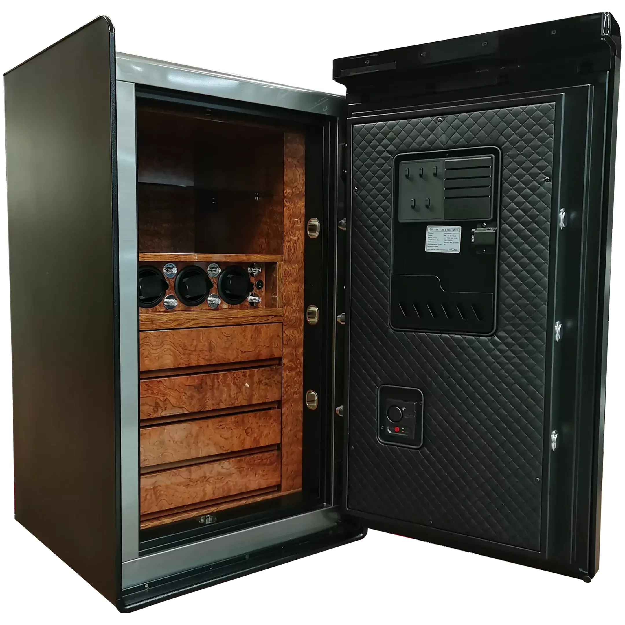 Южнокорейский производитель Sun Safes представляет линейку Lucell . Под этой маркой производит стильные сейфы: они не только обладают превосходным качеством, но и выглядят красиво и украсят любой интерьер. Сейф Lucell LU-3000 HP2 предназначается для домашнего использования. Без него крайне сложно обойтись в кабинете, поскольку он идеально подходит для хранения денег, банковских карт, ценных бумаг, ювелирных украшений, часов и т.д. Конструкция крепится к полу, благодаря чему, выполняет роль не только надежного хранилища, но и красивого элемента декора. Оснащается сейф электронным замком. Он очень простой и удобный в процессе эксплуатации. Такой тип замка считается самым тяжело вскрываемым. Чтобы получить доступ к внутреннему наполнению, владельцу сейфа необходимо ввести код. Если он три раза подряд был указан неправильно, то сейф автоматически блокируется. Внутри оно дополнительно оснащается карманом для хранения ключей и банковских карт, лотком для ювелирных украшений, полками, адаптером, противоударной сигнализацией. Сейф относится к первому классу взломостойкости. Уровень его огнеупорности составляет 60P.
