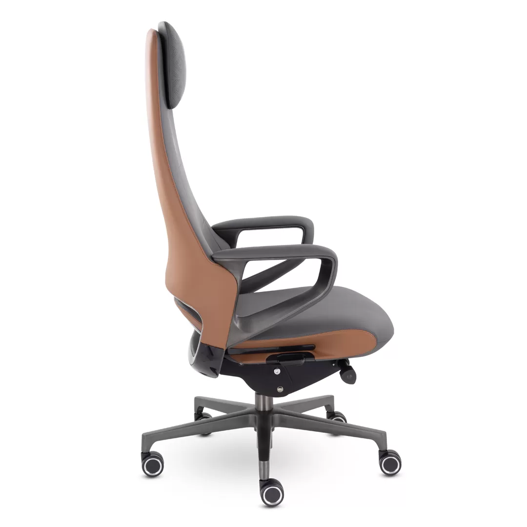 Кресло EPIK A-001-MV 171-172 (темно‑серый/коричневый) — современное эргономичное кресло руководителя с обивкой из экокожи и стильным двухцветным оформлением. Модель сочетает комфорт, продуманный дизайн и функциональные регулировки, что делает её подходящим вариантом для офисных кабинетов, переговорных и домашних рабочих зон.
