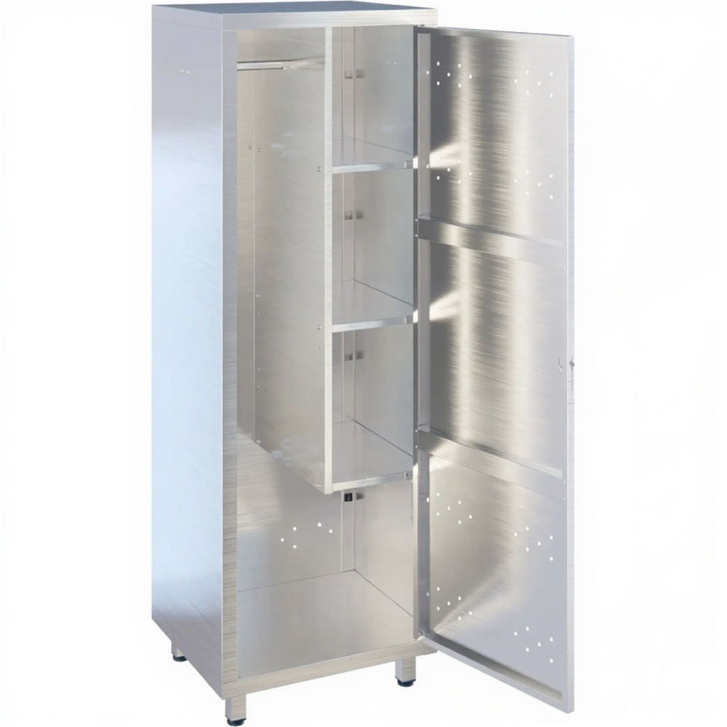 - Универсальность и адаптивность под нужды учреждения — шкаф может использоваться не только для классического клинингового инвентаря, но и для хранения рабочей одежды, небольшого садового инструмента (в школах), средств для ухода за территорией или запасов бытовой химии.