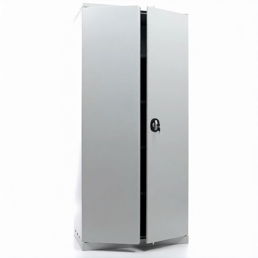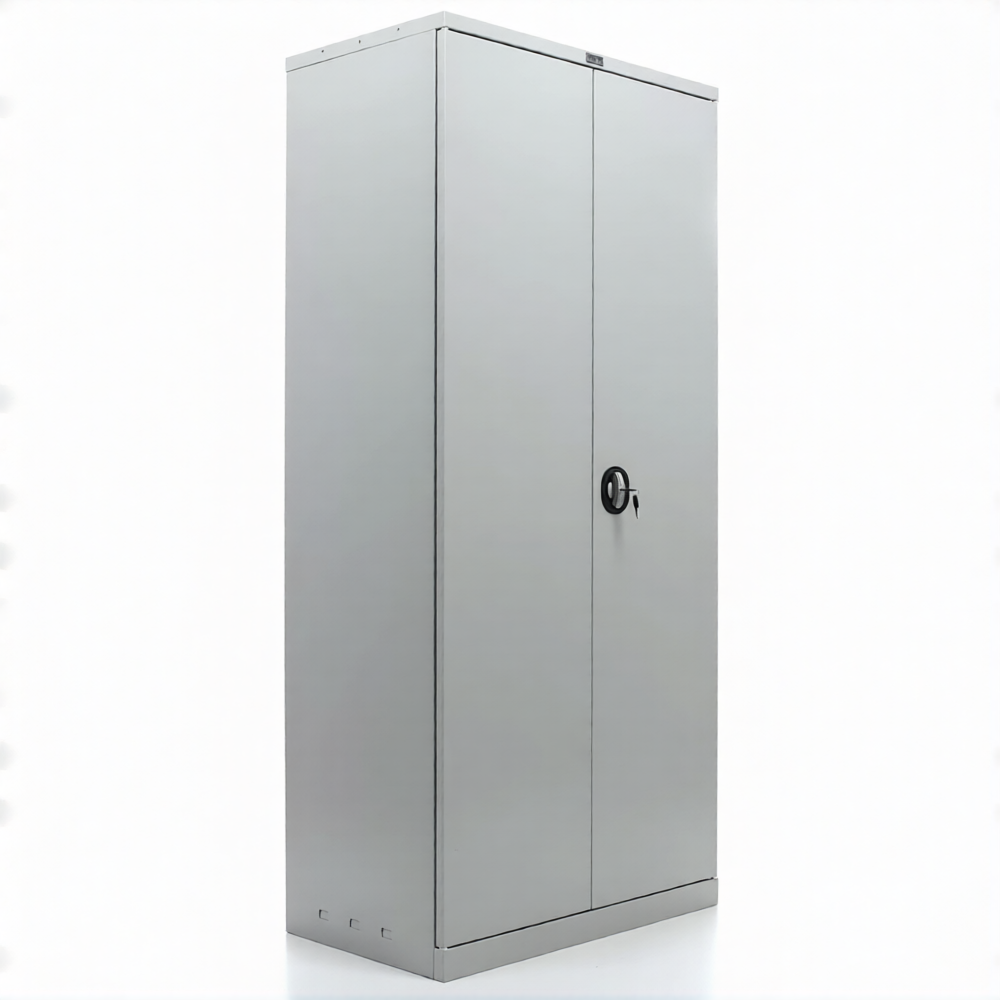 - имеет распашные двери, ключевой замок, регулируемые полки, фурнитуру;