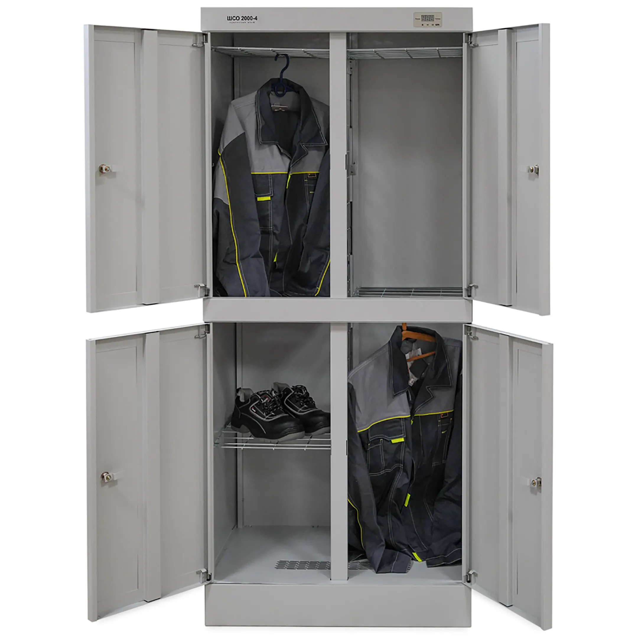 Шкаф сушильный ШСО-2000-4 — это производительное и надежное оборудование для эффективной сушки рабочей и спортивной одежды, спецодежды, обуви, белья и инвентаря на предприятиях, в медицинских, спортивных учреждениях, гостиницах и учебных заведениях. Модель обеспечивает быструю, равномерную сушку благодаря циркуляции теплого воздуха, способствуя устранению влаги, запахов и поддержанию гигиены.