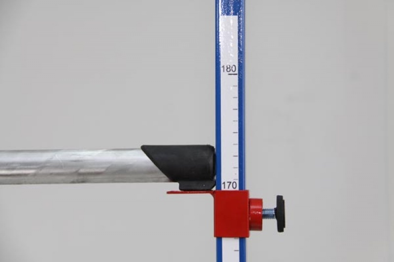 - Точная регулировка высоты — возможность установки планки с шагом 1 см в соответствии с официальными стандартами.